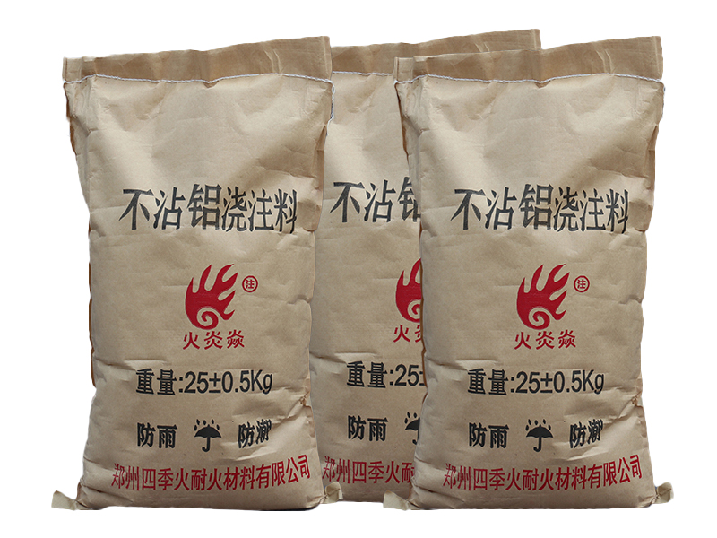 不沾鋁澆注料在熔鋁爐內(nèi)襯的應用,因不沾鋁澆注料原料中有紅柱石及超微細粉,會與鋁液反應形成緊密堆積,快速的填補澆注料的氣孔,能阻擋鋁液的多次滲透。所以用不沾鋁澆注料做熔鋁爐內(nèi)襯很好的選擇。