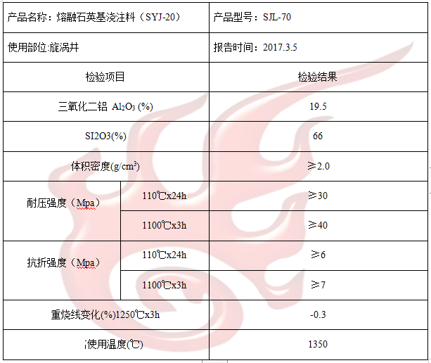 熔融石英基澆注料理化指標(biāo):