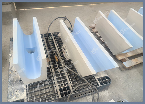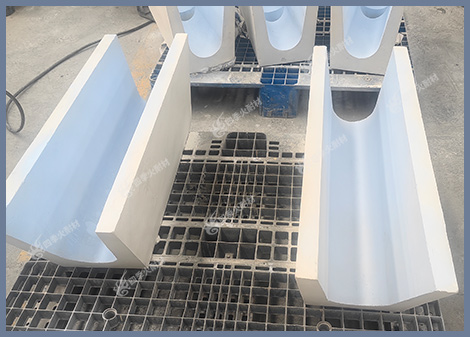鋁液流鋁槽 澆注料預(yù)制件主要包括流槽底部、流槽側(cè)壁及兩個(gè)側(cè)壁中間的U型流鋁槽。U型流鋁槽的設(shè)計(jì)有助于鋁液在流經(jīng)過(guò)程中自然散熱,溫度略有下降,因此有些流槽會(huì)安裝加熱功能以保持鋁液的溫度。